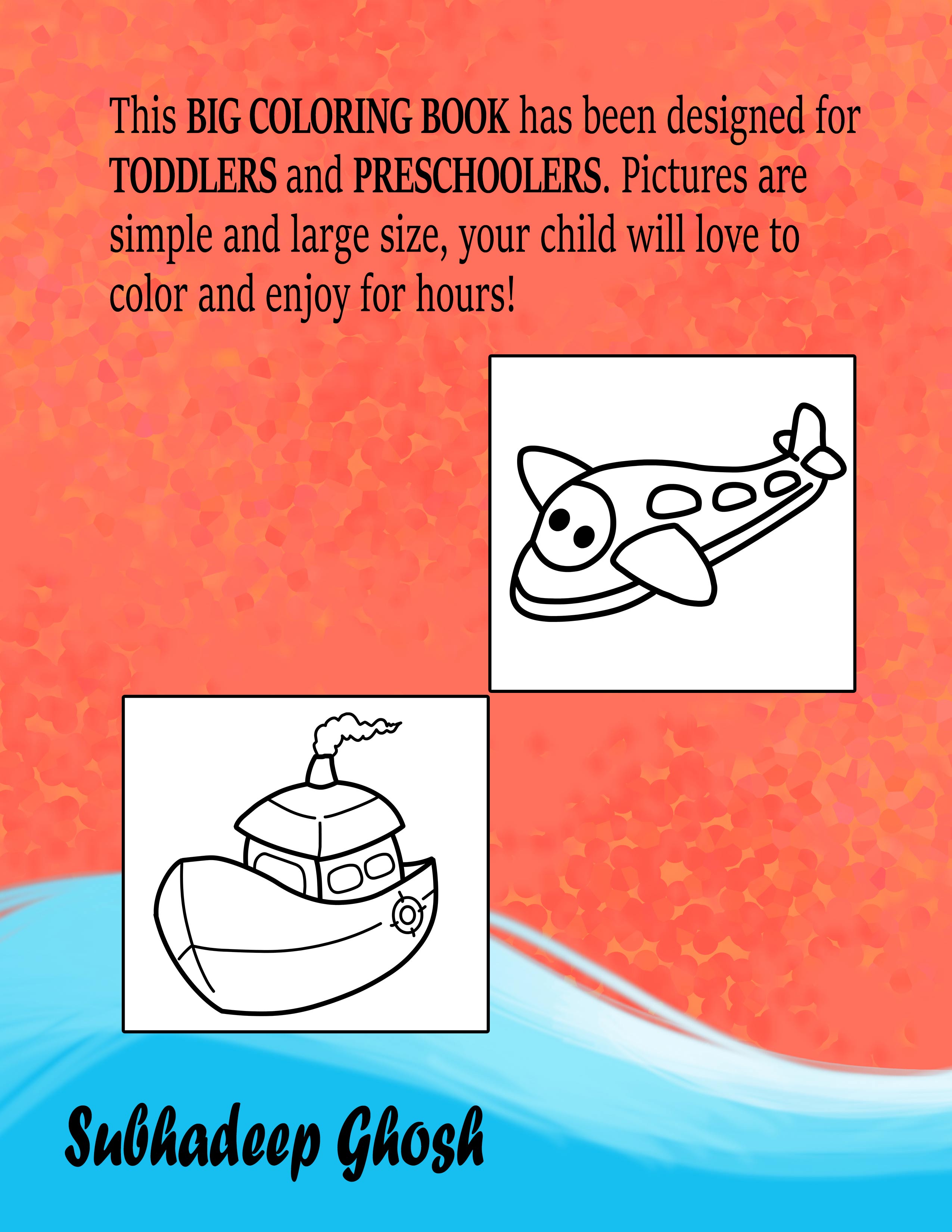 This is a BIG COLORING BOOK and has been designed specially for TODDLERS and PRESCHOOLERS. The pictures are kept simple and in large size for the ease of the child to color and enjoy it for hours. A perfect gift for the young hearts which will nourish their mind and will develop their motor skills, color sense and creativity. The pictures are child friendly and suitable for all the genders.